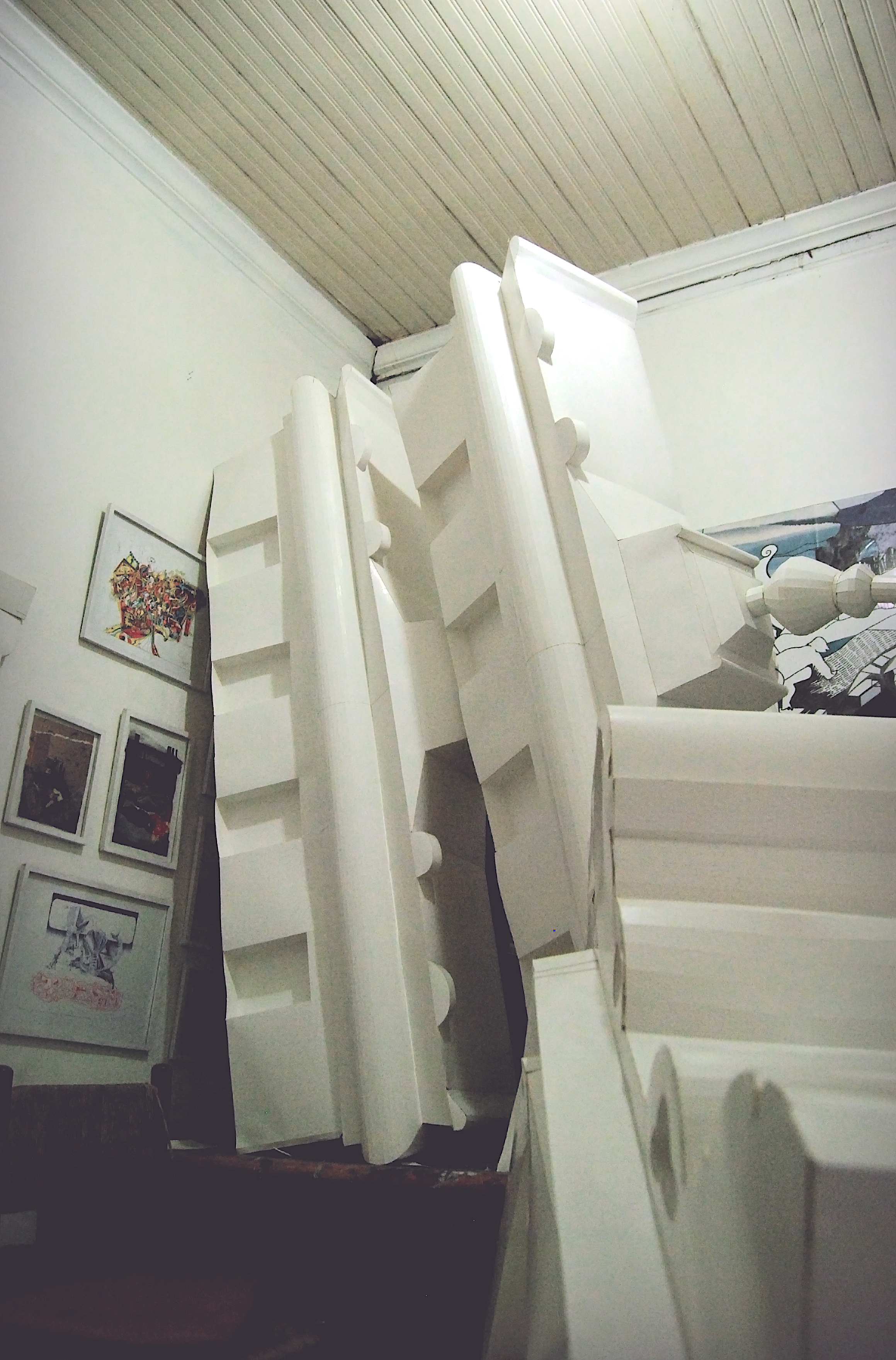 Reconstrucción Estación Pirque (Pirque Station Reconstruction) is the video recording of an art action, produced during the second half of 2010 and completed on December 19 of the same year. The video shows me constructing, in white card stock, part of the façade of the now-demolished Pirque Station, at a 1:1 scale.