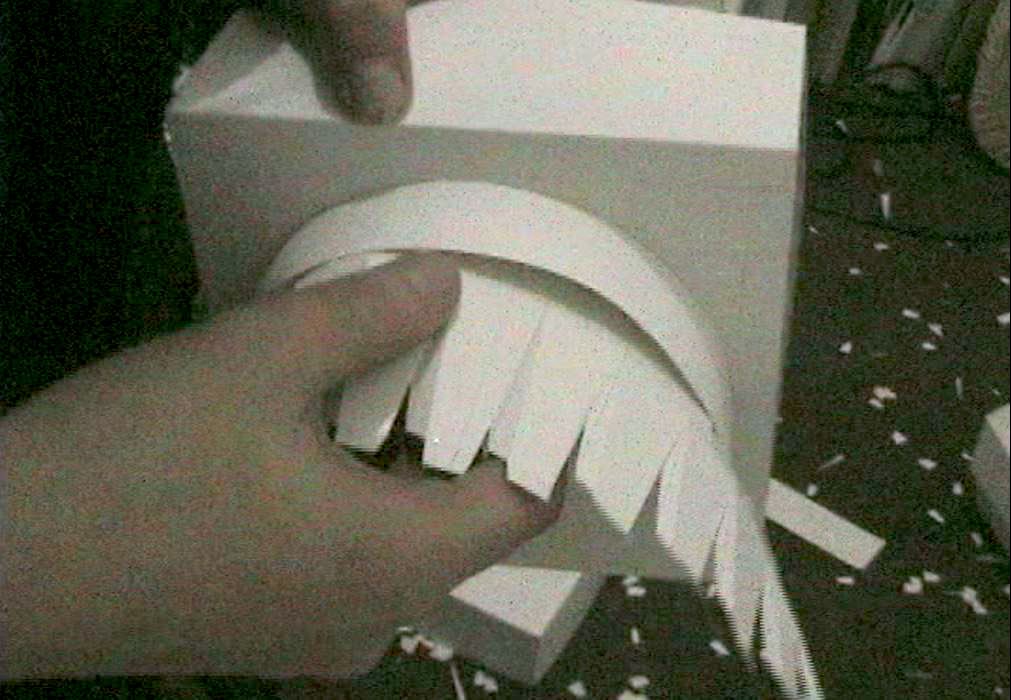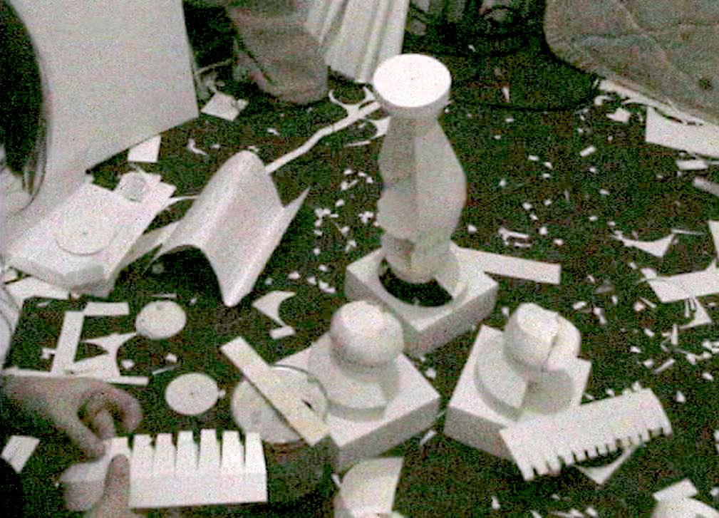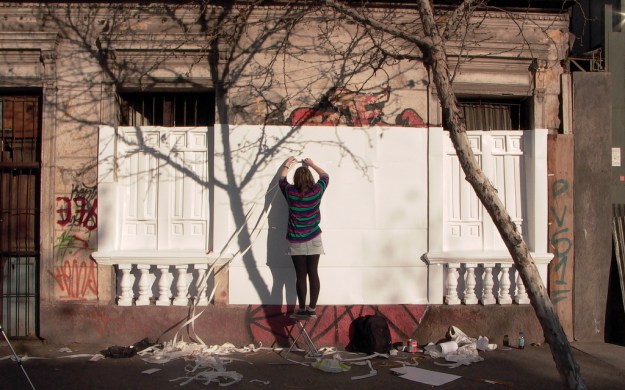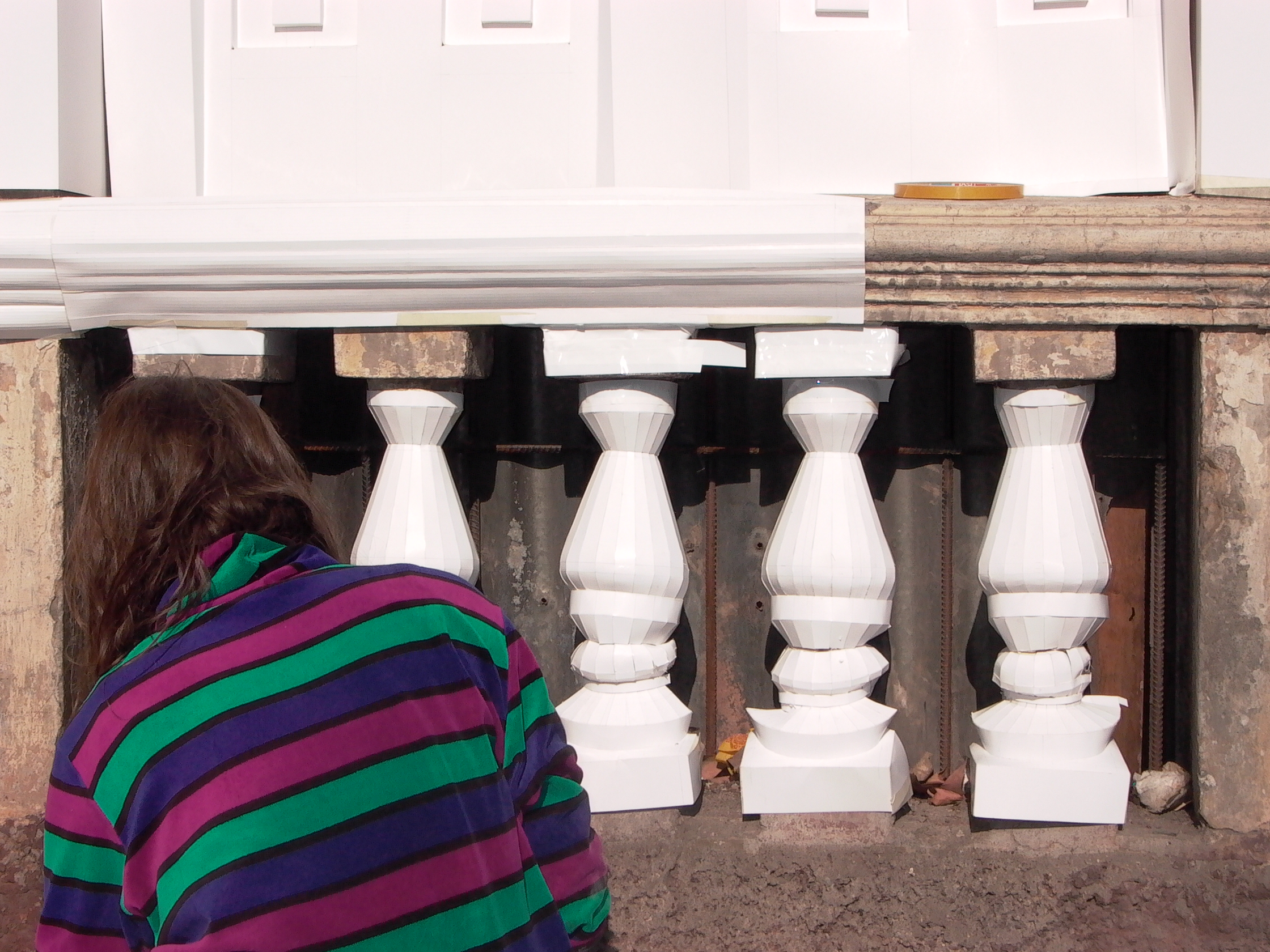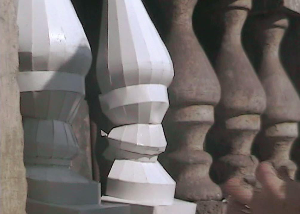 Con Restauración III (12:57 min.) propongo, entonces, la posibilidad de restaurar estas construcciones antiguas y abandonadas, para darles vida una vez más. Por la presencia de balaustradas en la casa elegida, la consideré como próxima (no estricta y puramente) al estilo neoclásico, por lo que el blanco del cartón resultó ser una buena alternativa para intervenirla, ya que la monocromía prima en este tipo de edificios.