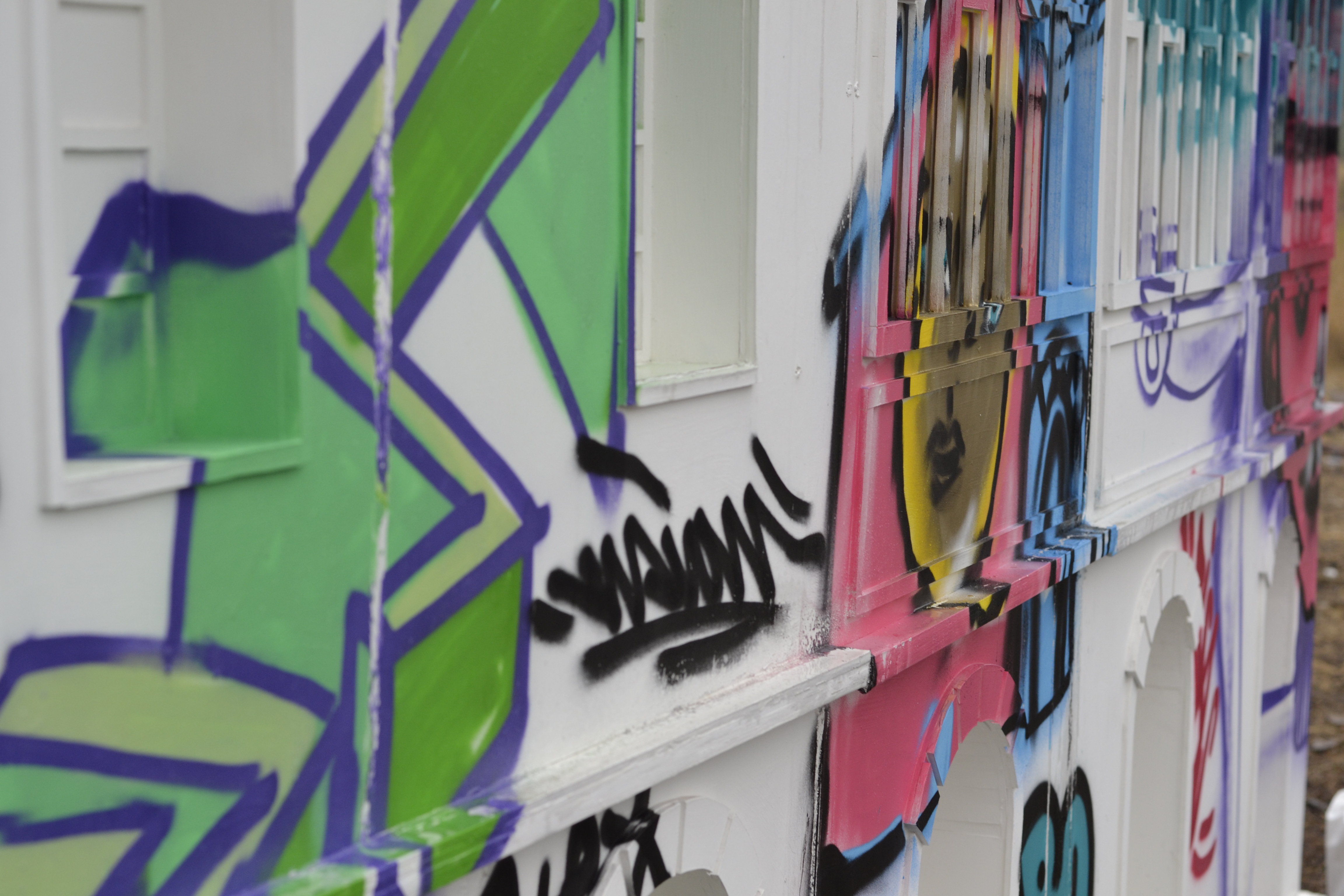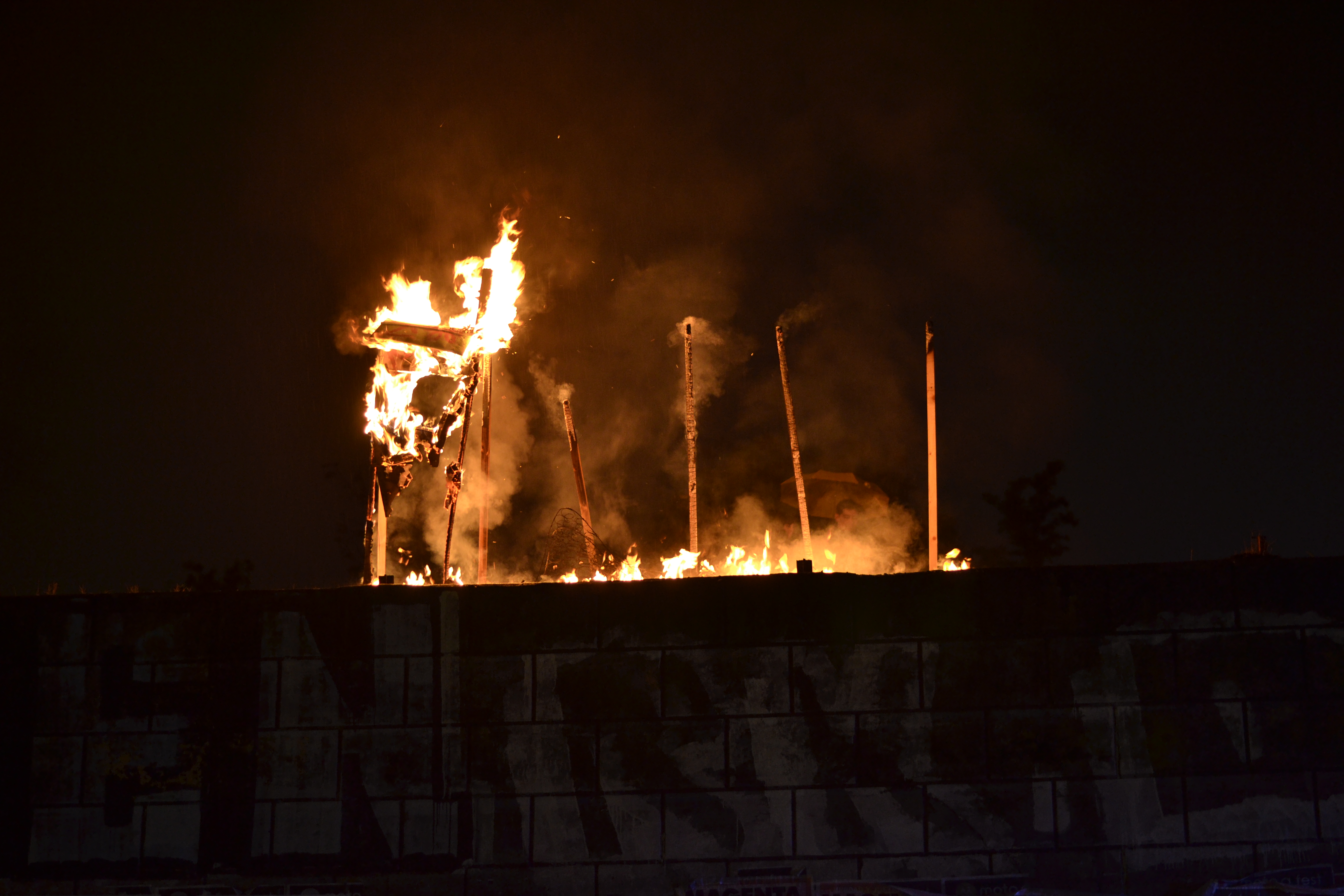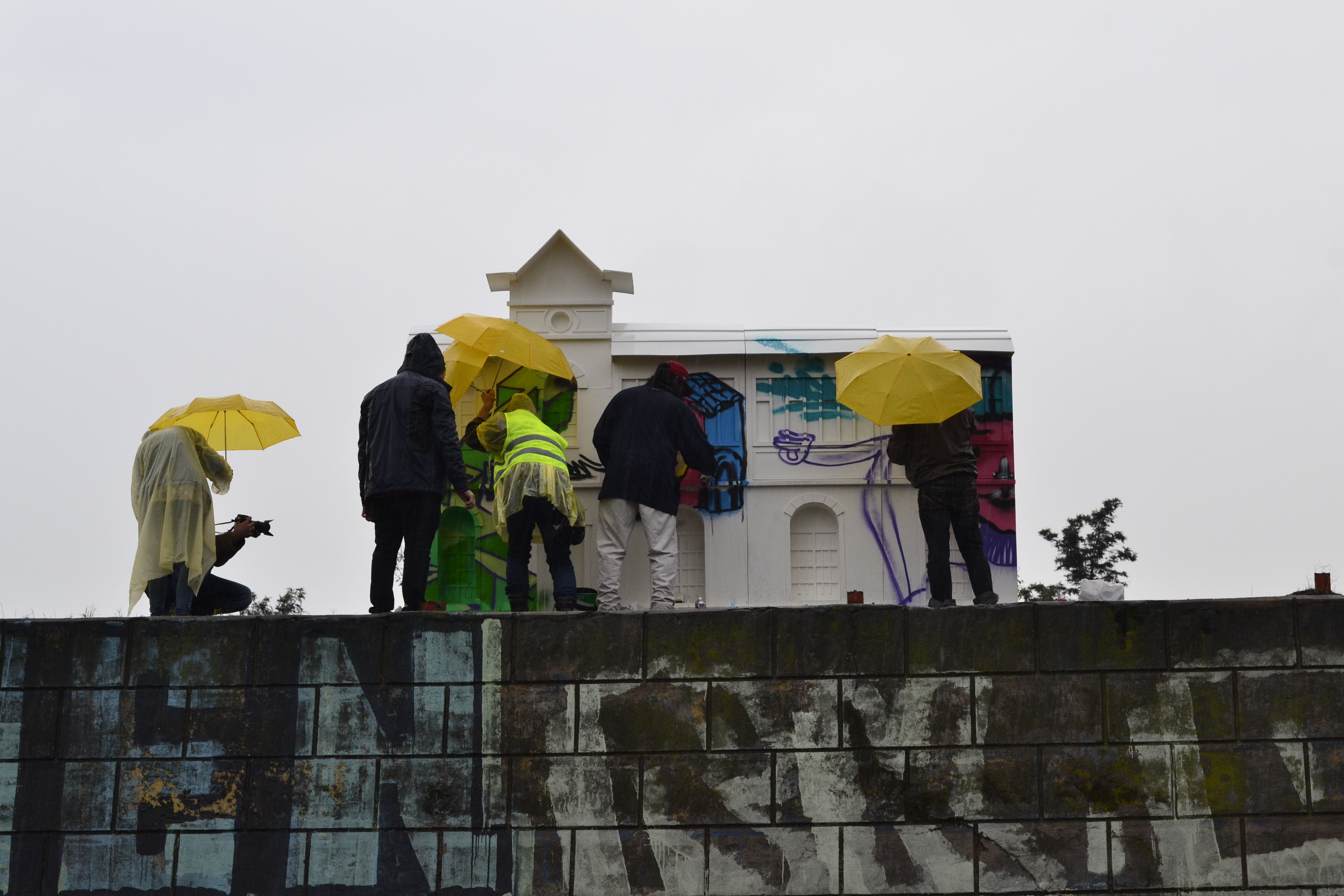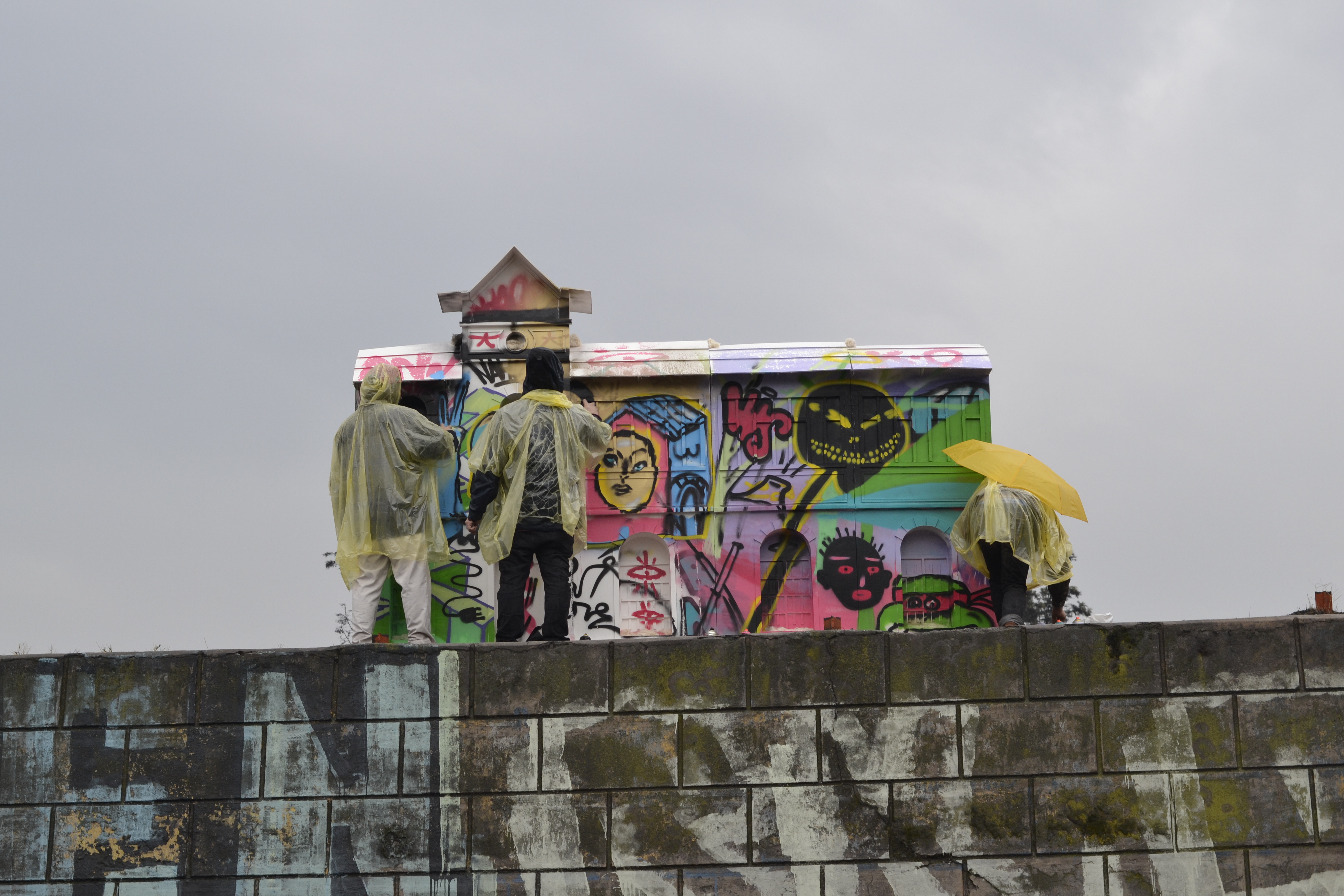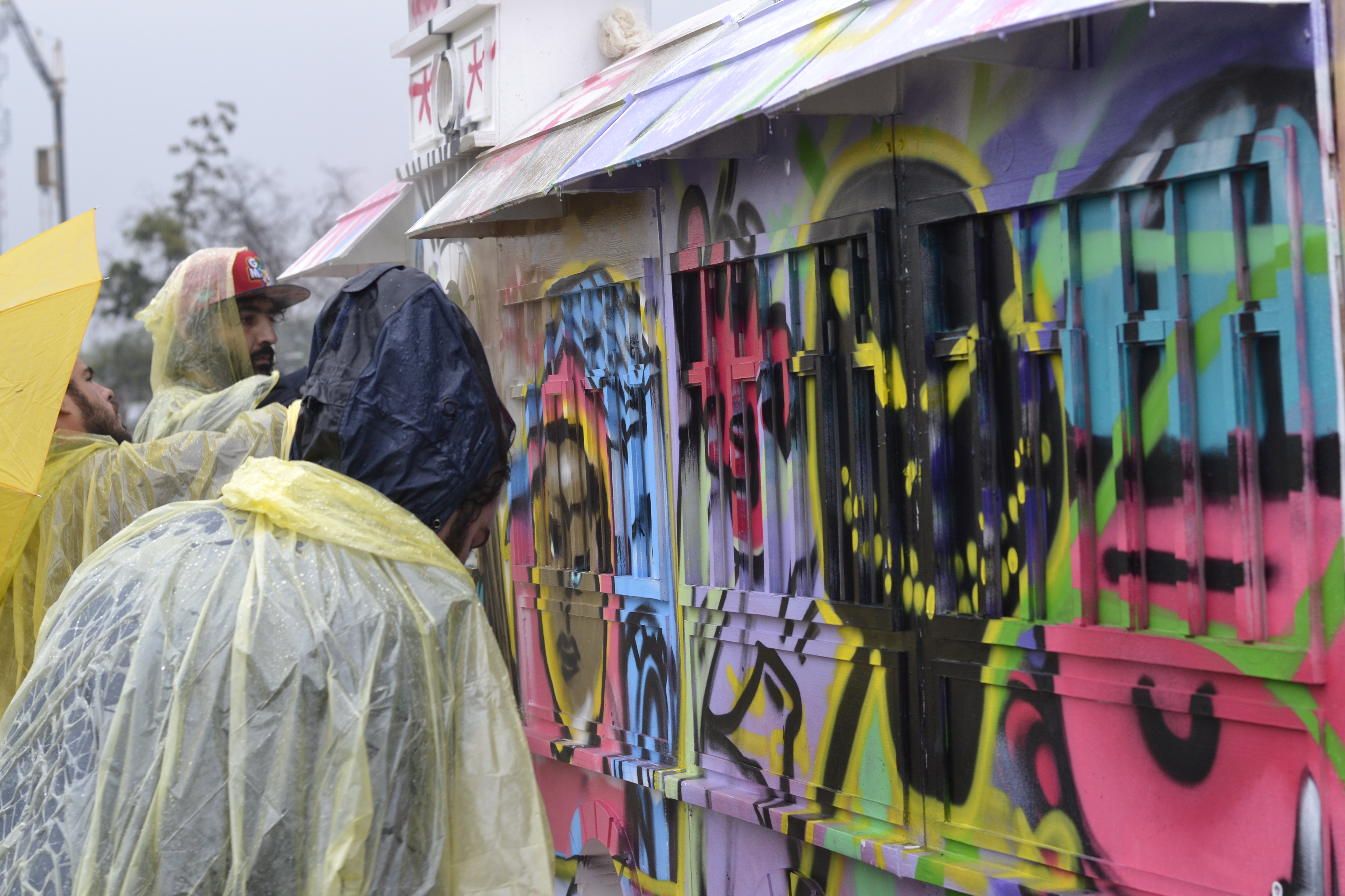 Mitin en la estación Yungay is a visual arts project realised in the frame of the “Espacios Revelados 2016” event. It’s about the installation of a scale wooden model of the old Yungay station (Balmaceda Avenue with Carrascal), destroyed in a fire during the first half of the 20th century during massive protests in the city of Santiago, Chile. This model was placed on top of the ruins of the old building’s ground floor, thus making the latter a part of the installation as a whole. Afterwards, the model was painted by local graffiti artists and burned in a public act.
