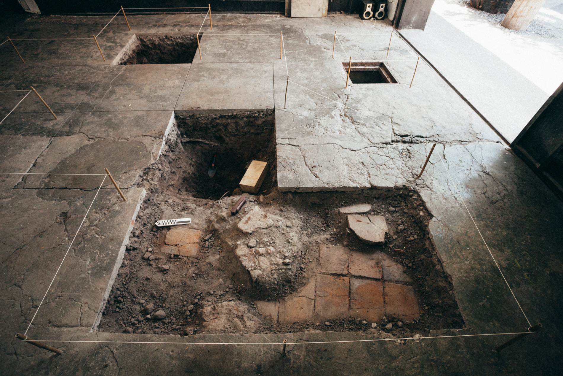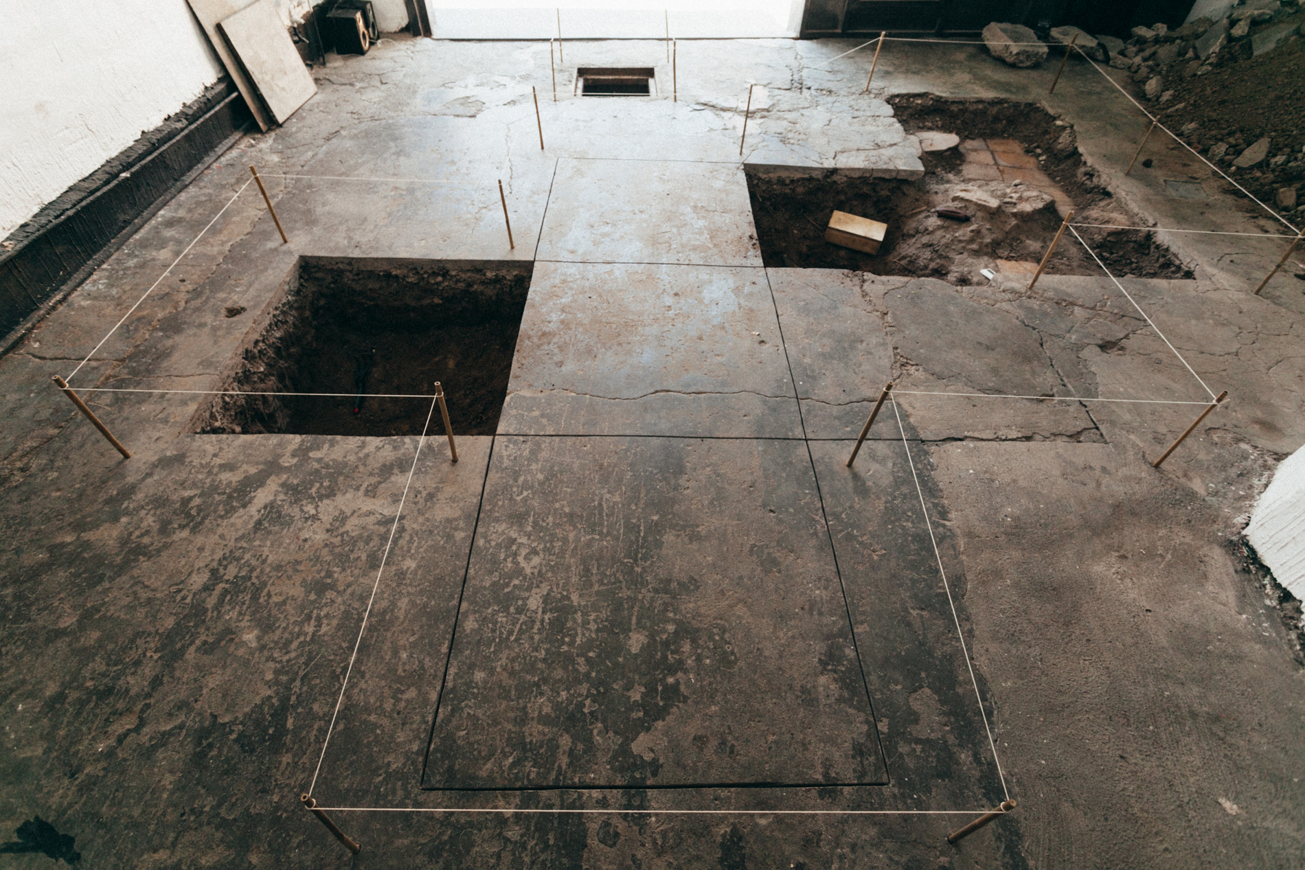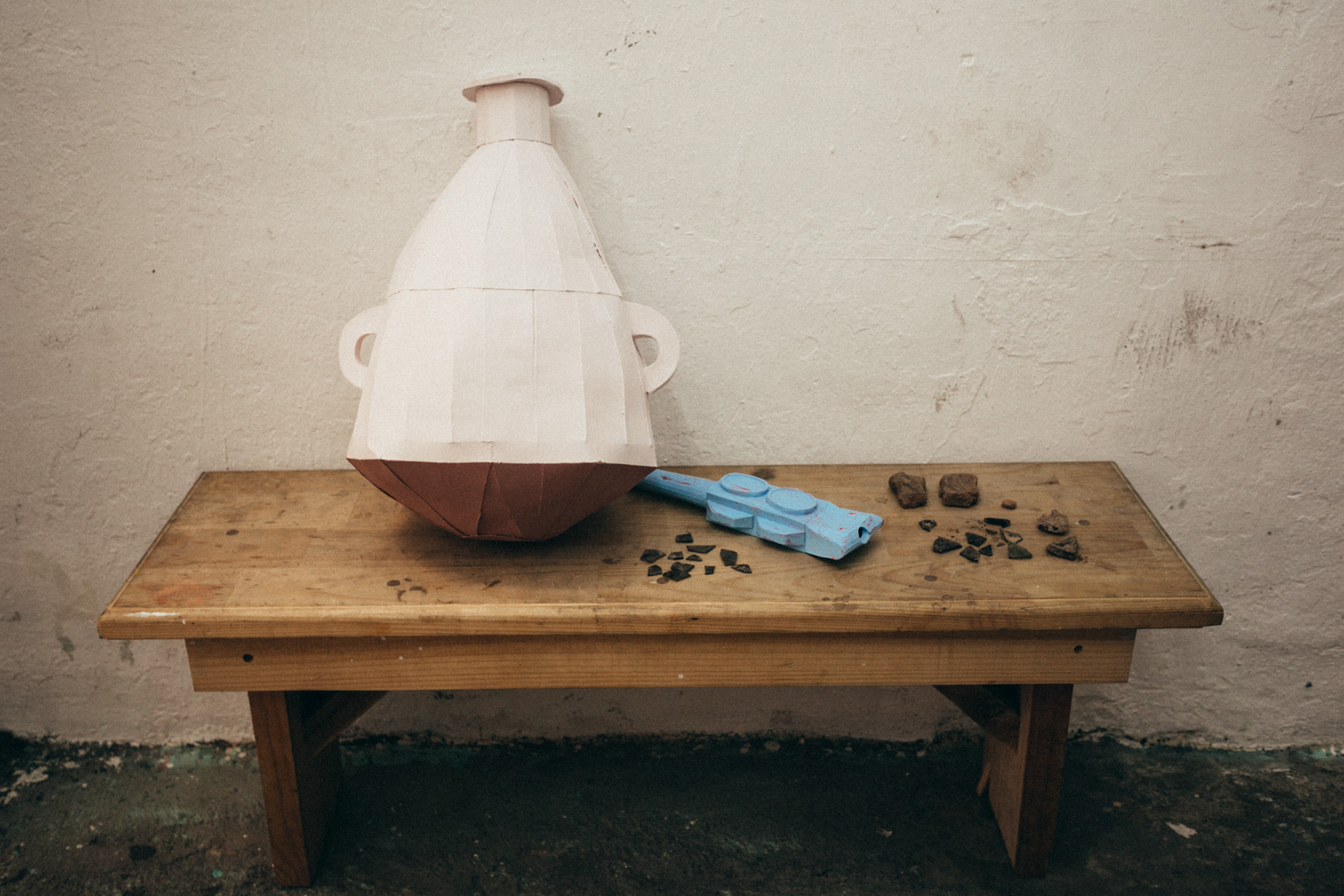 Oopart is an installation done in the project space of Sagrada Mercancia in November-December of 2016. It’s about an archaeologic excavation in collaboration with the members of the gallery in search for possible objects buried under the foundation slab of the showroom. This is a search in which the findings that actually come out of the earth are mixed with the ones that my imagination wants to see, objects I created at the time of said prospection.