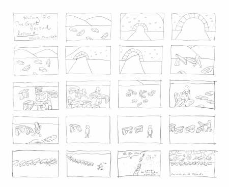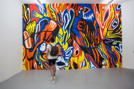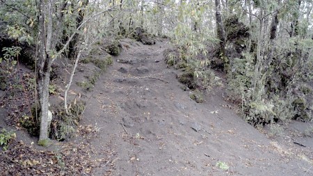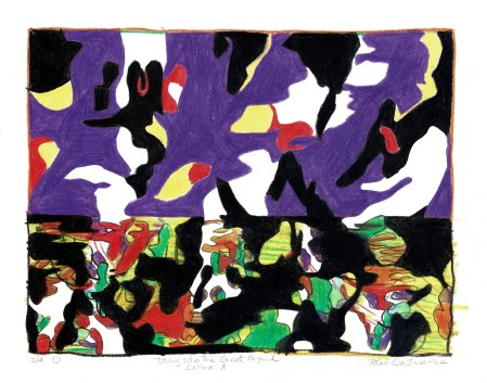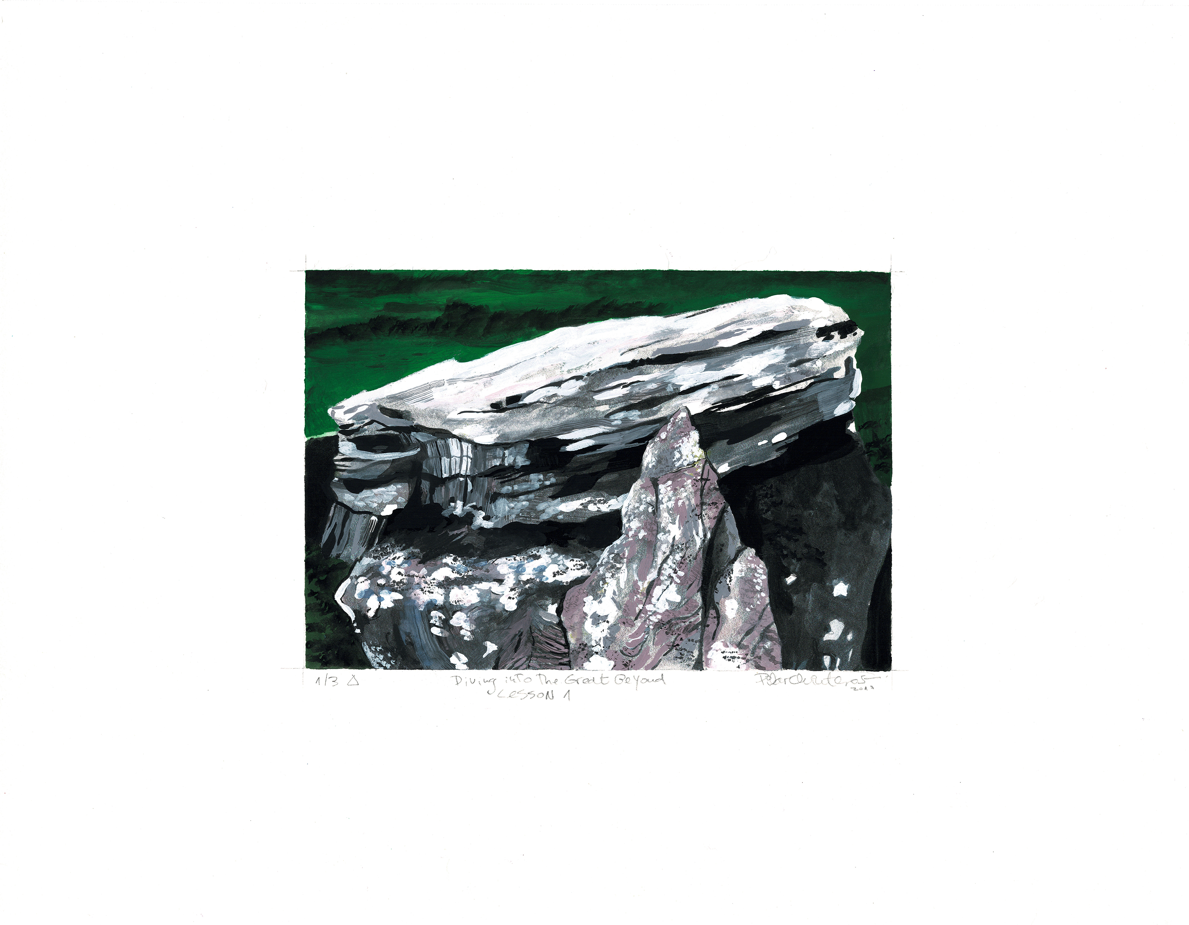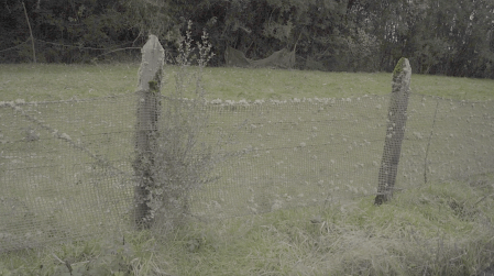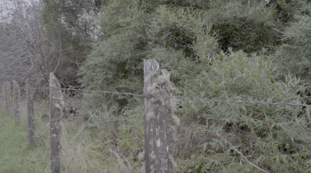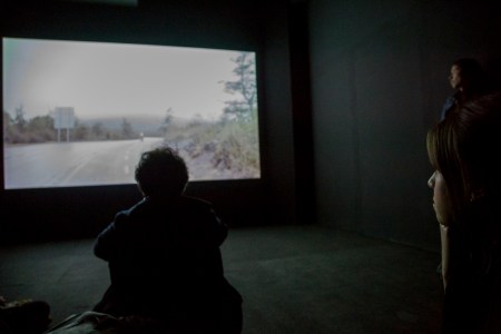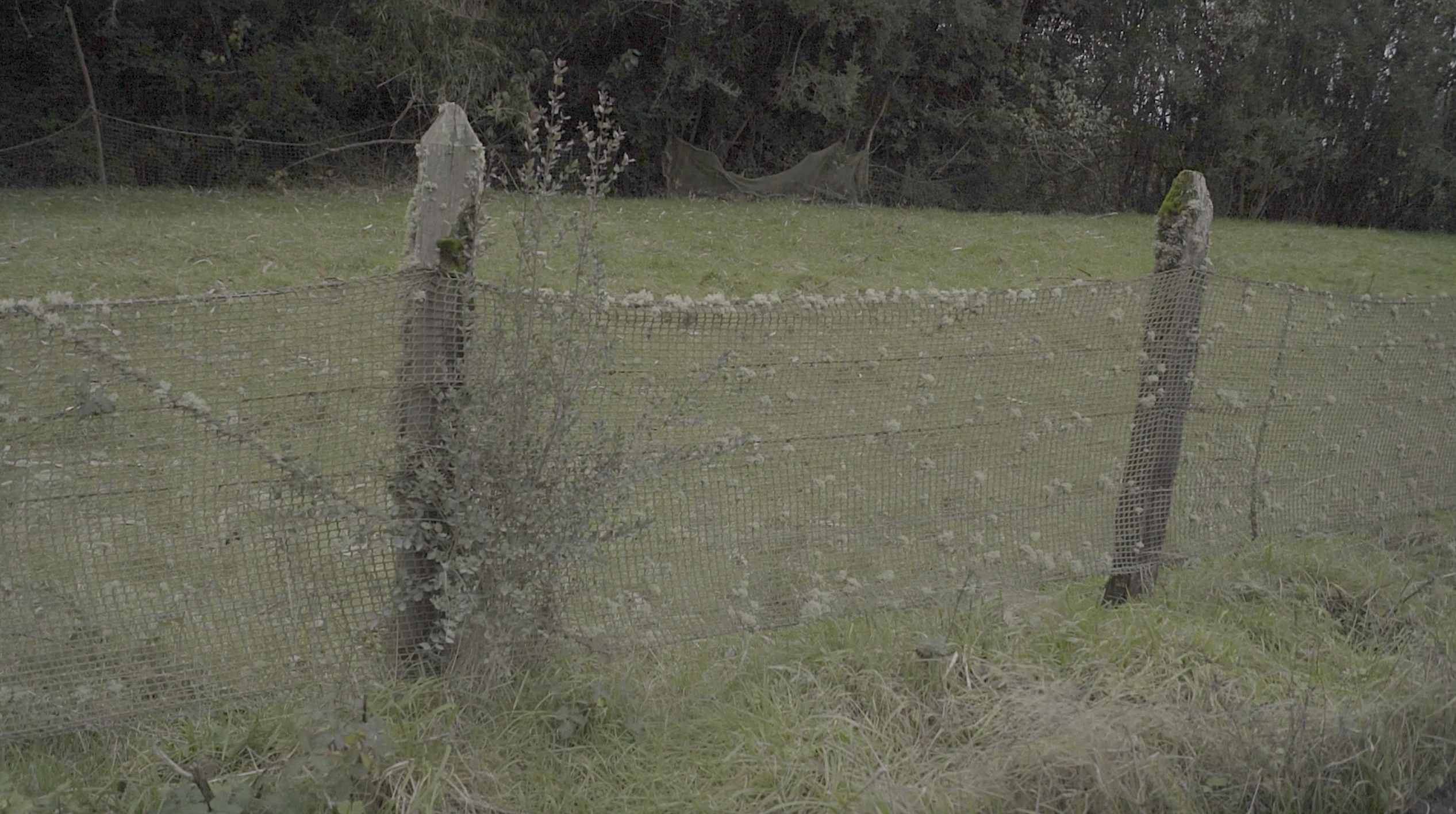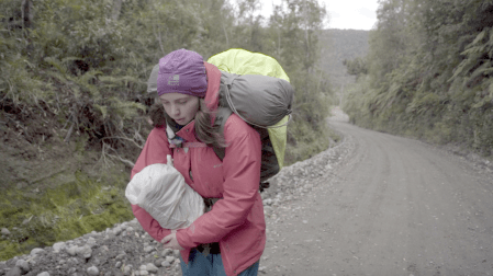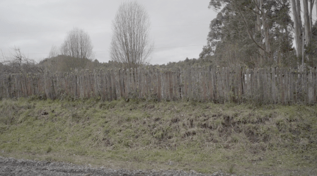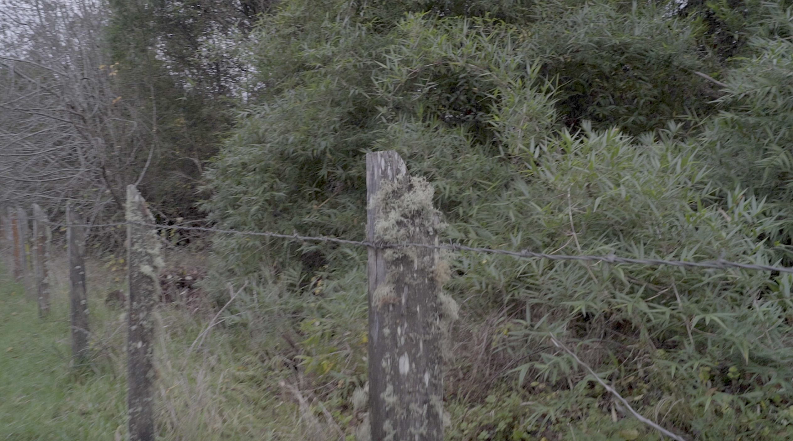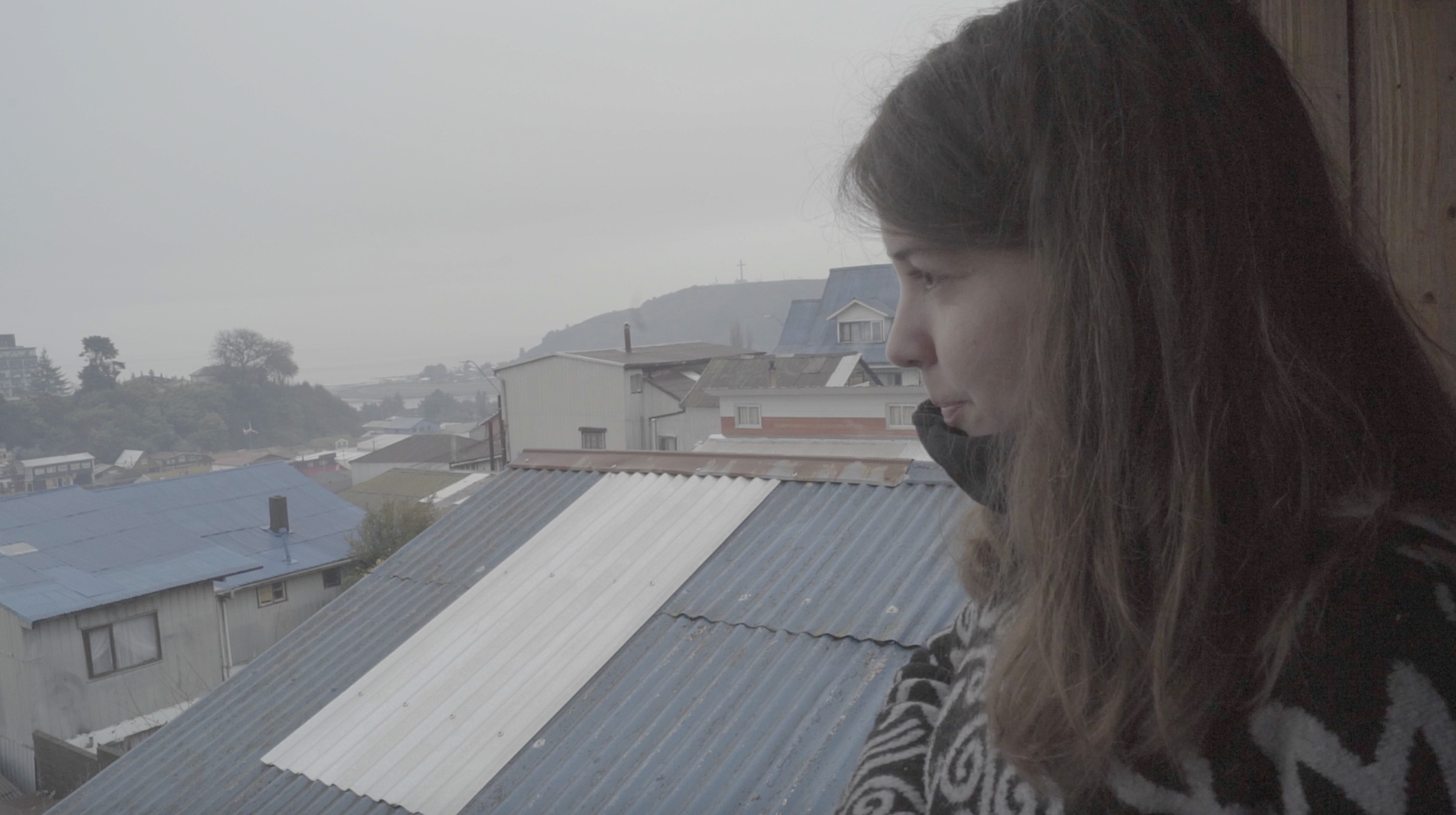 El video de la segunda sala, por su parte, es un registro del viaje que realicé en junio de ese año a la Región de los Lagos en el que registré una caminata, mochila al hombro, desde Puerto Montt hasta Ensenada, motivada por textos escritos tanto por autores como Darwin o Humboldt y como por colonos de la zona que describen la zona como un territorio indómito y de difícil acceso. Para poder ingresar a la sala de proyección el espectador debía cruzar un mural de colores primarios, blanco y negro que ocupaba parte importante de la sala.