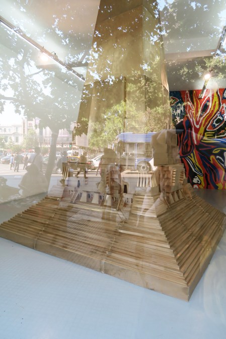The scale model of an obelisk-type building occupied the second room. It was about the interpretation of a project envisioned by French architect Constant-Désiré Despradelle for the city of Chicago at the end of the 19th century, which, if built, would have been 457 metres tall. The name of this project, Beacon of Progress, tells of the intention behind the construction of high-rise buildings and what they pretend to represent.