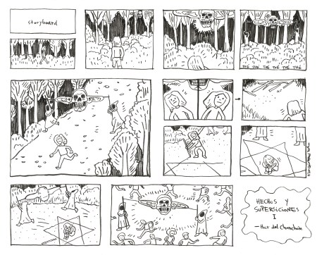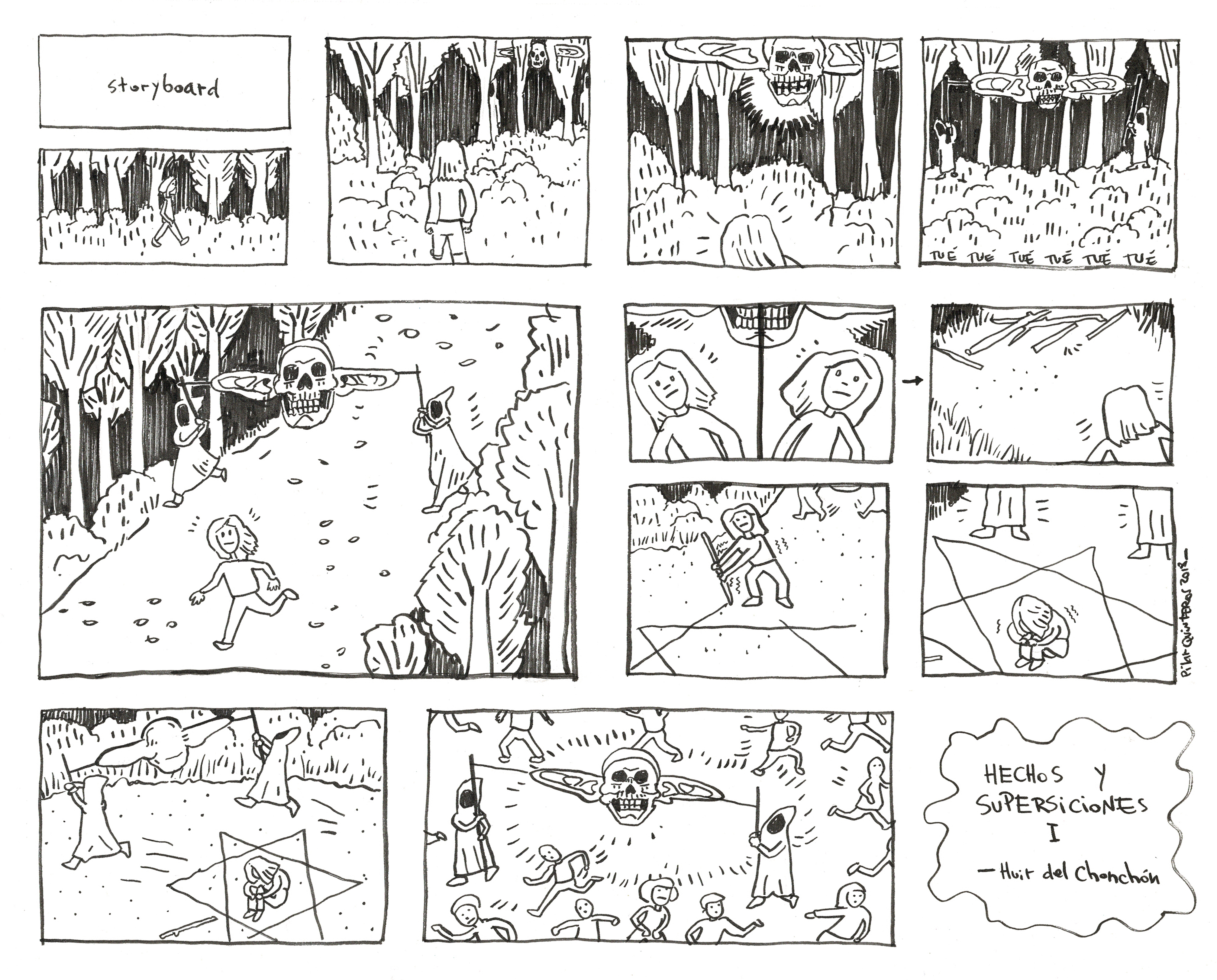 El corto parte con un paseo por el bosque que es interrumpido por la presencia del Chonchón. Construido de esponja pintada, cuelga de unas cuerdas y es llevado por dos personas vestidas de negro. El Chonchón y sus controladores entonces me persiguen cerro abajo. Luego de correr un rato buscando un espacio abierto, me paro a dibujar una estrella de Salomón para refugiarme en el centro de ella. Así el Chonchón sigue su camino.