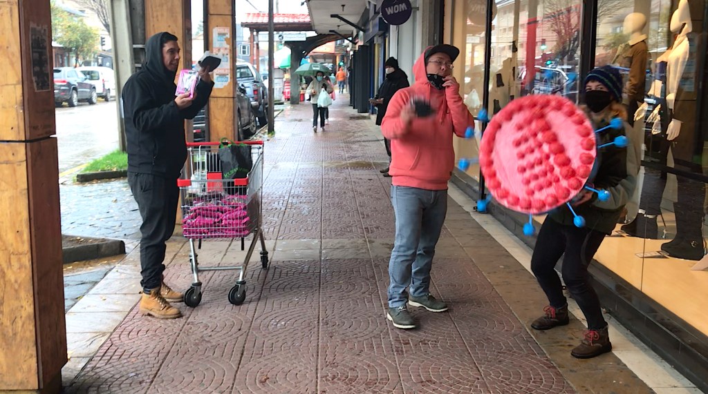Me quedé en Coyhaique para terminar las piezas de cartón, plástico y tela que pensaba usar para el corto, guardarlas en una bodega e irme. En eso, también se suspendió mi vuelo de vuelta a Santiago y me tuve que quedar aquí por todo abril.