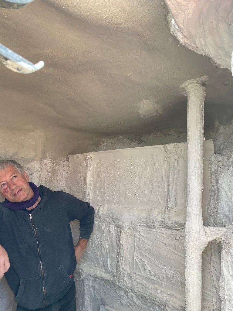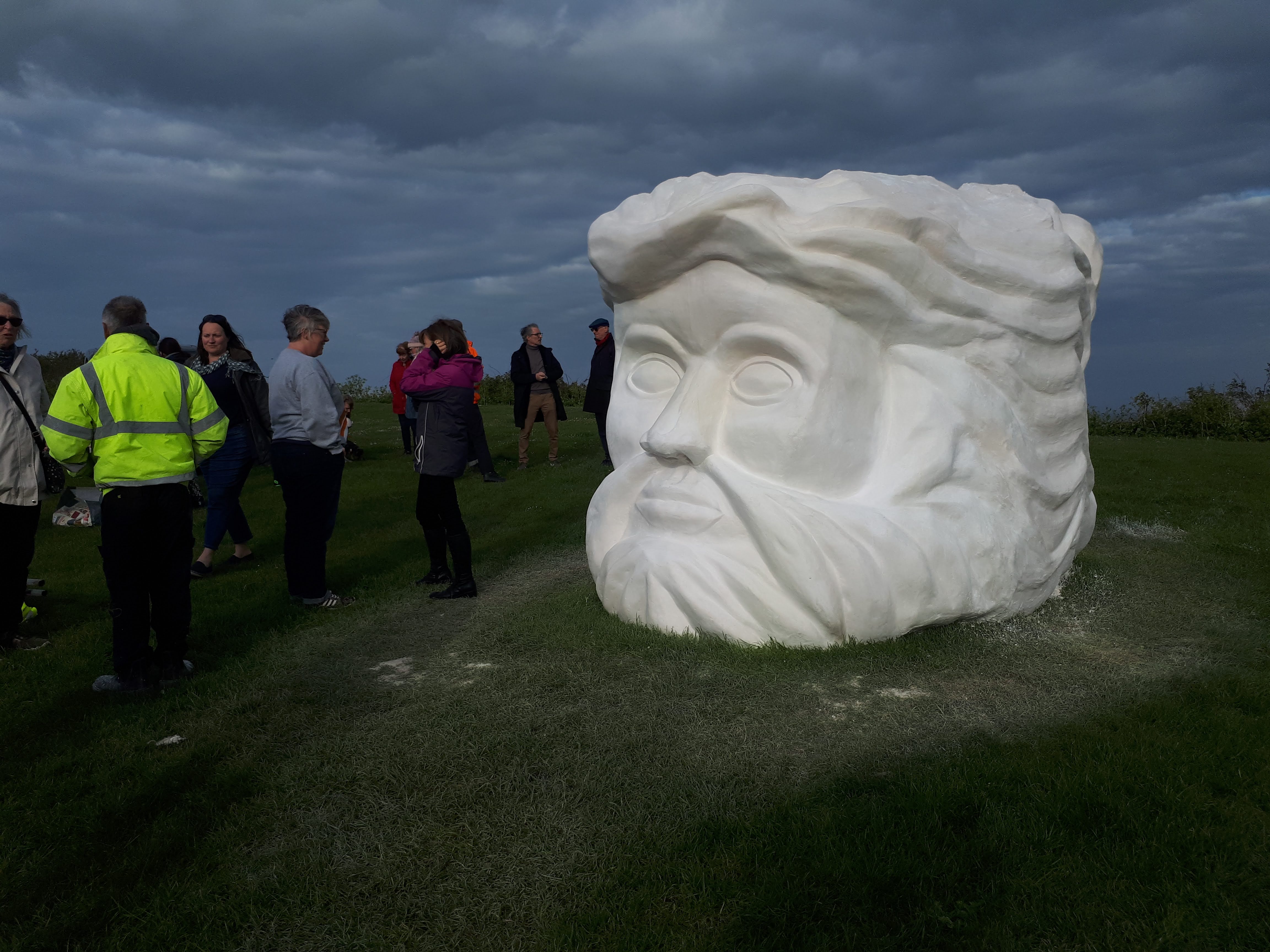 The large sculpture was made out of a carefully calibrated plaster composite that resembles the chalk cliffs nearby, and its substance is similarly susceptible to weather and to human interaction, liable like the eroding cliff face to disintegrate over time. I cede sculptural control to the materials through the work’s built-in fragility and metamorphosis, and in this way I try ones again to accept mortality and not being able to control life. It is kind of “a monument to uncertainty”.