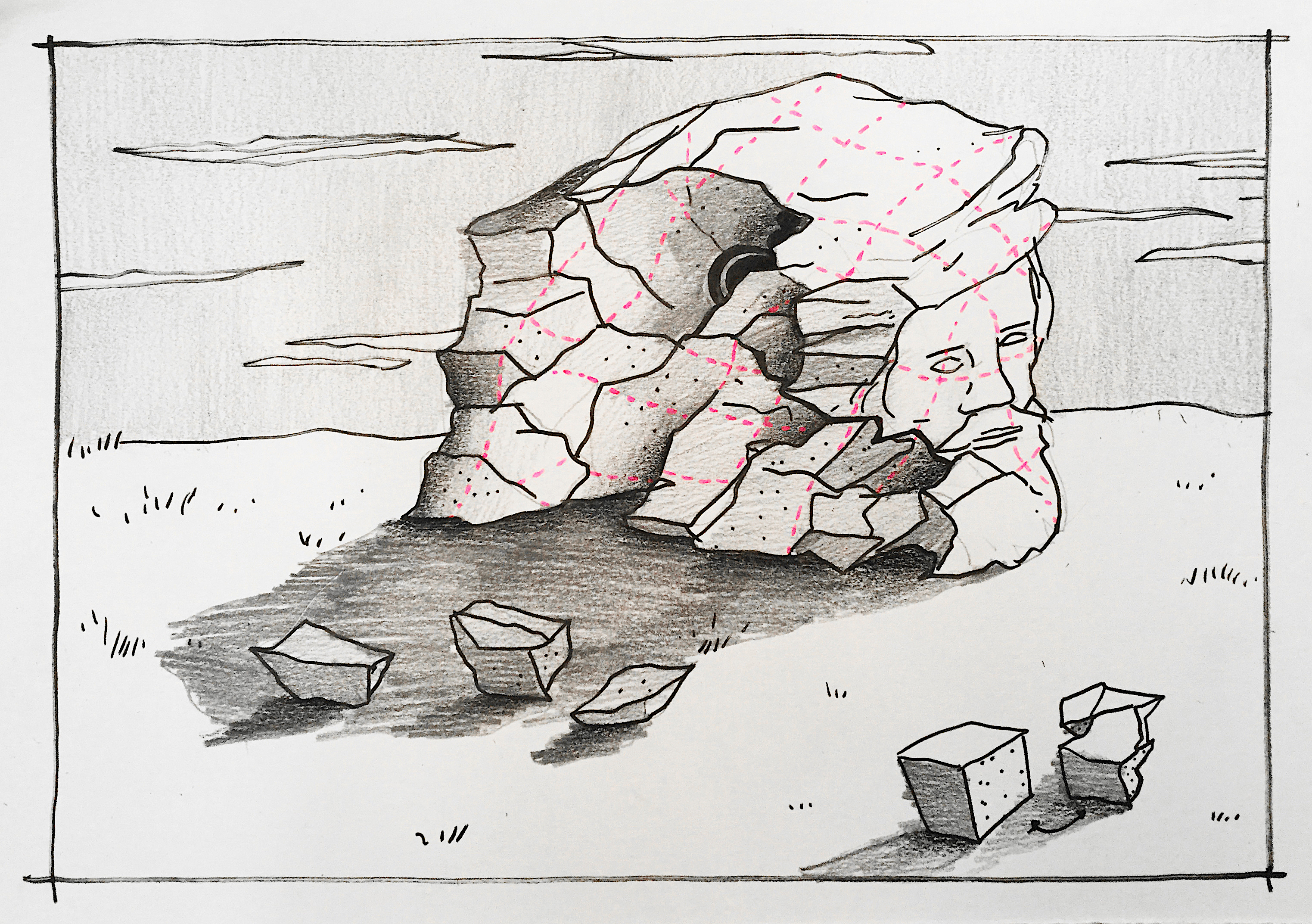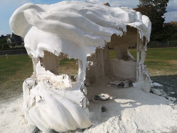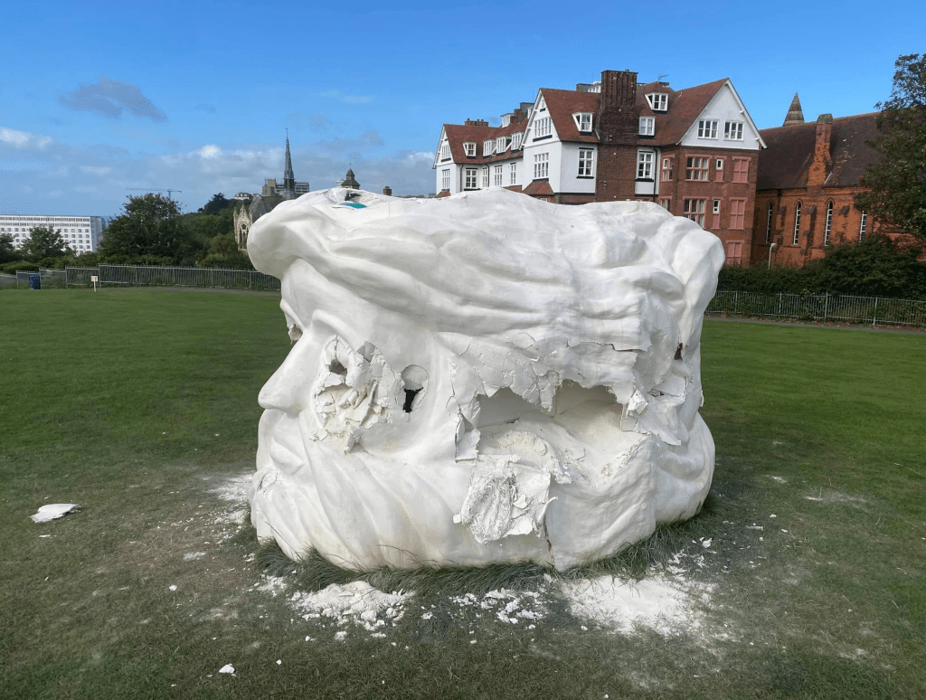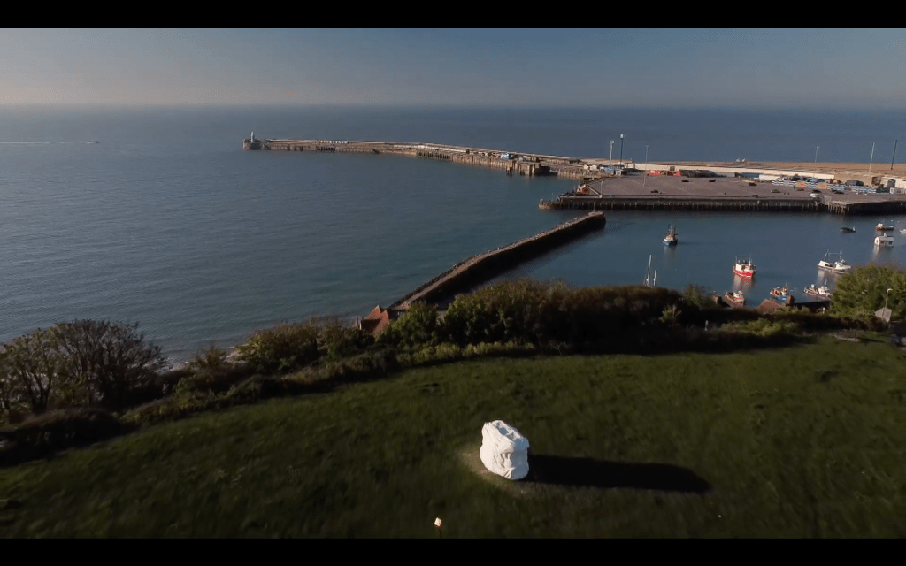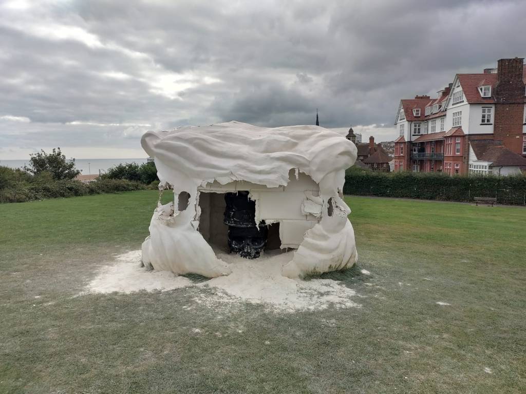 La gran escultura estaba hecha de un compuesto de yeso cuidadosamente calibrado que se asemeja a los acantilados de tiza cercanos, y su sustancia es igualmente susceptible a la intemperie y a la interacción humana, susceptible como la erosión del acantilado a desintegrarse con el tiempo. Cedo el control de la obra a los materiales a través de su fragilidad y metamorfosis inherentes, y así intento nuevamente aceptar un poco más la idea de mortalidad y no poder controlar la vida. Es una especie de “monumento a la incertidumbre”.