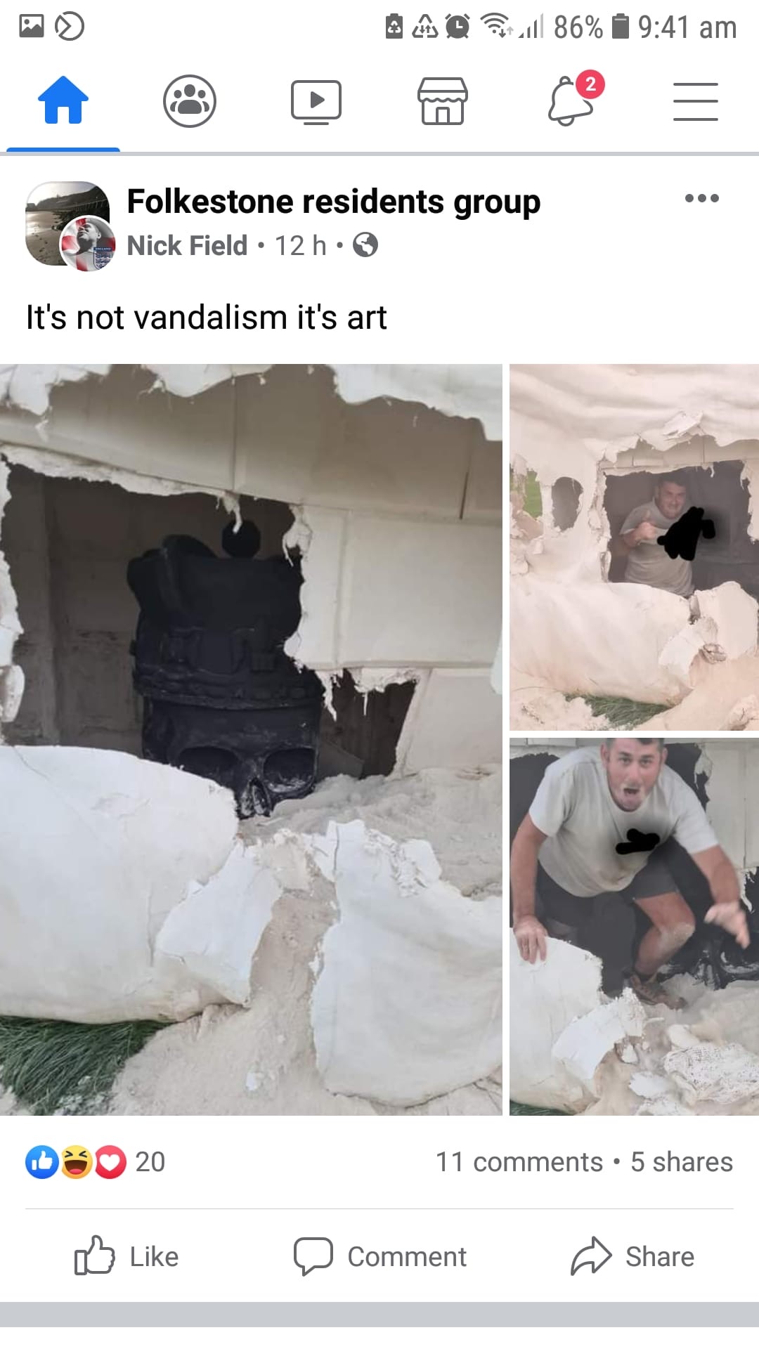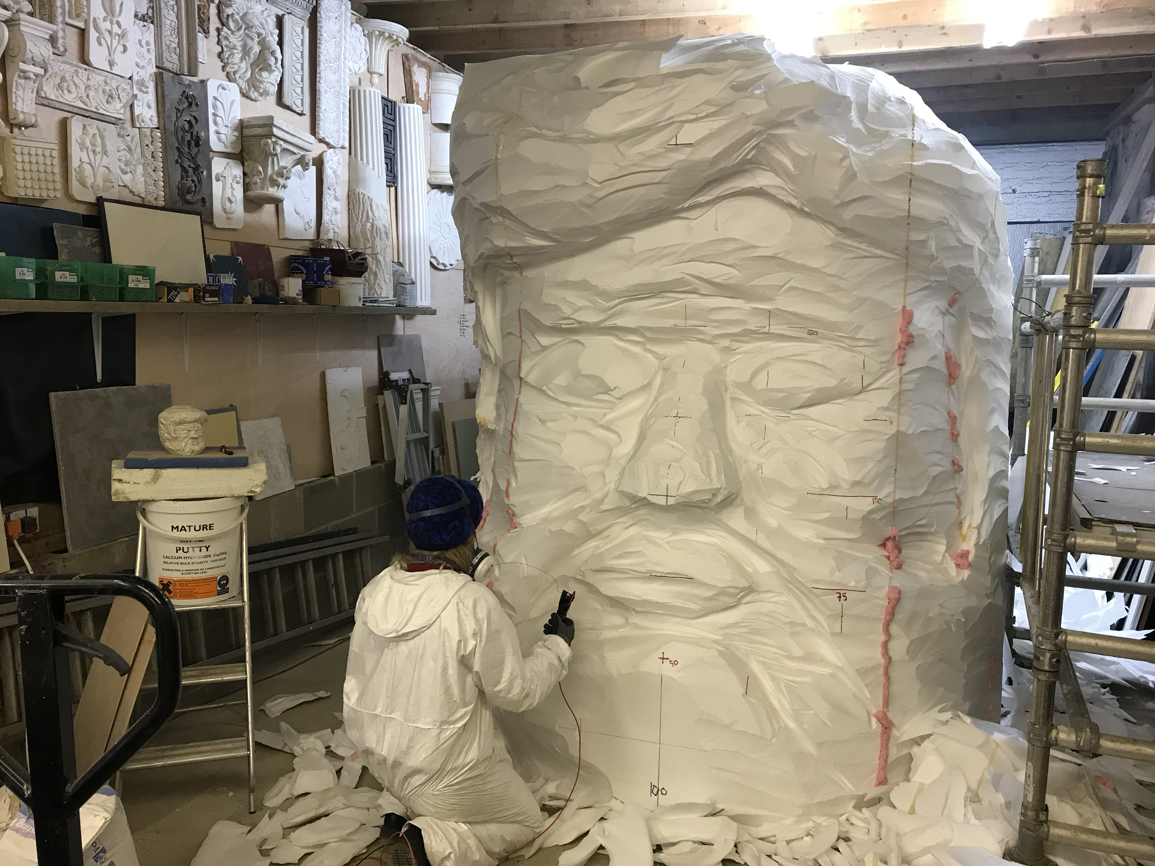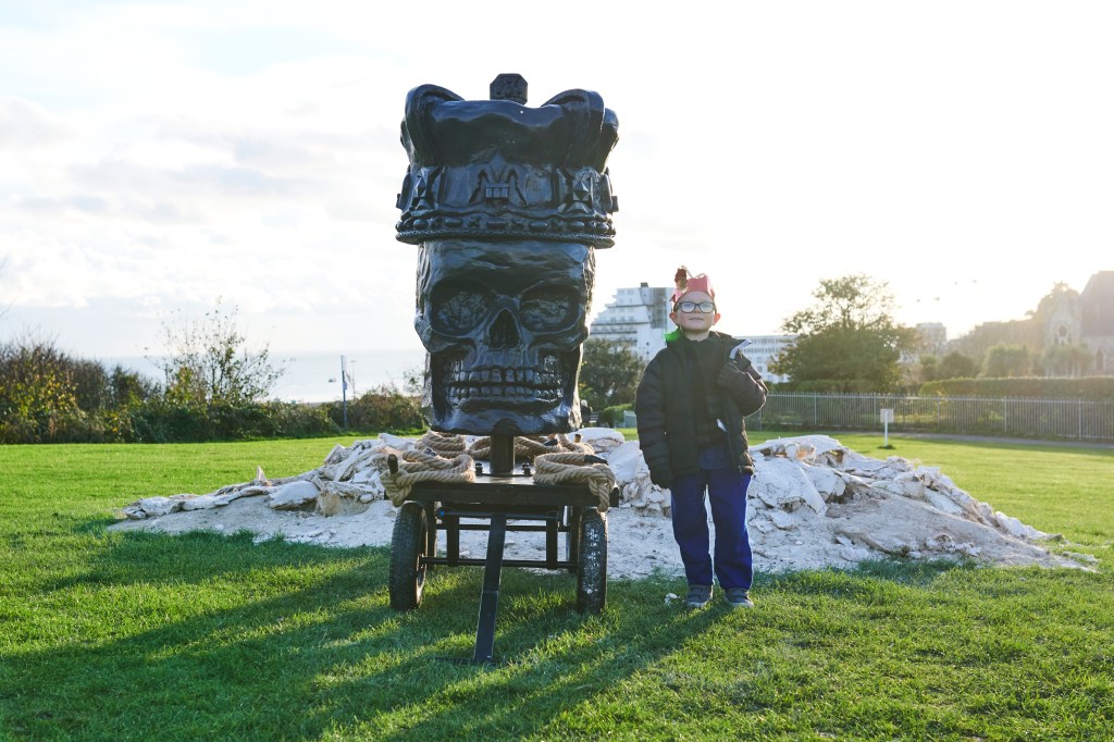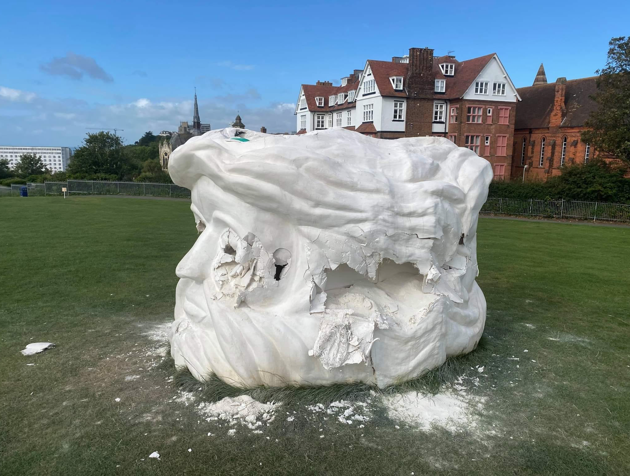 ‘Janus Fortress: Folkestone’, curated by Tamsin Dillon, is a multifaceted work located on the cliff-top overlooking the town. In ancient Roman religion and myth, Janus was the god of beginnings, gates, transitions, time, duality, doorways, passages, frames and endings, usually depicted with two faces. The sculpture I presented in Folkestone, which likewise presents two faces — one faced inland and the other gazing at the sea — symbolises the duality of borders: of looking outwards while protecting inwards, a dichotomy that both Brexit and the pandemic have made extremely pronounced.