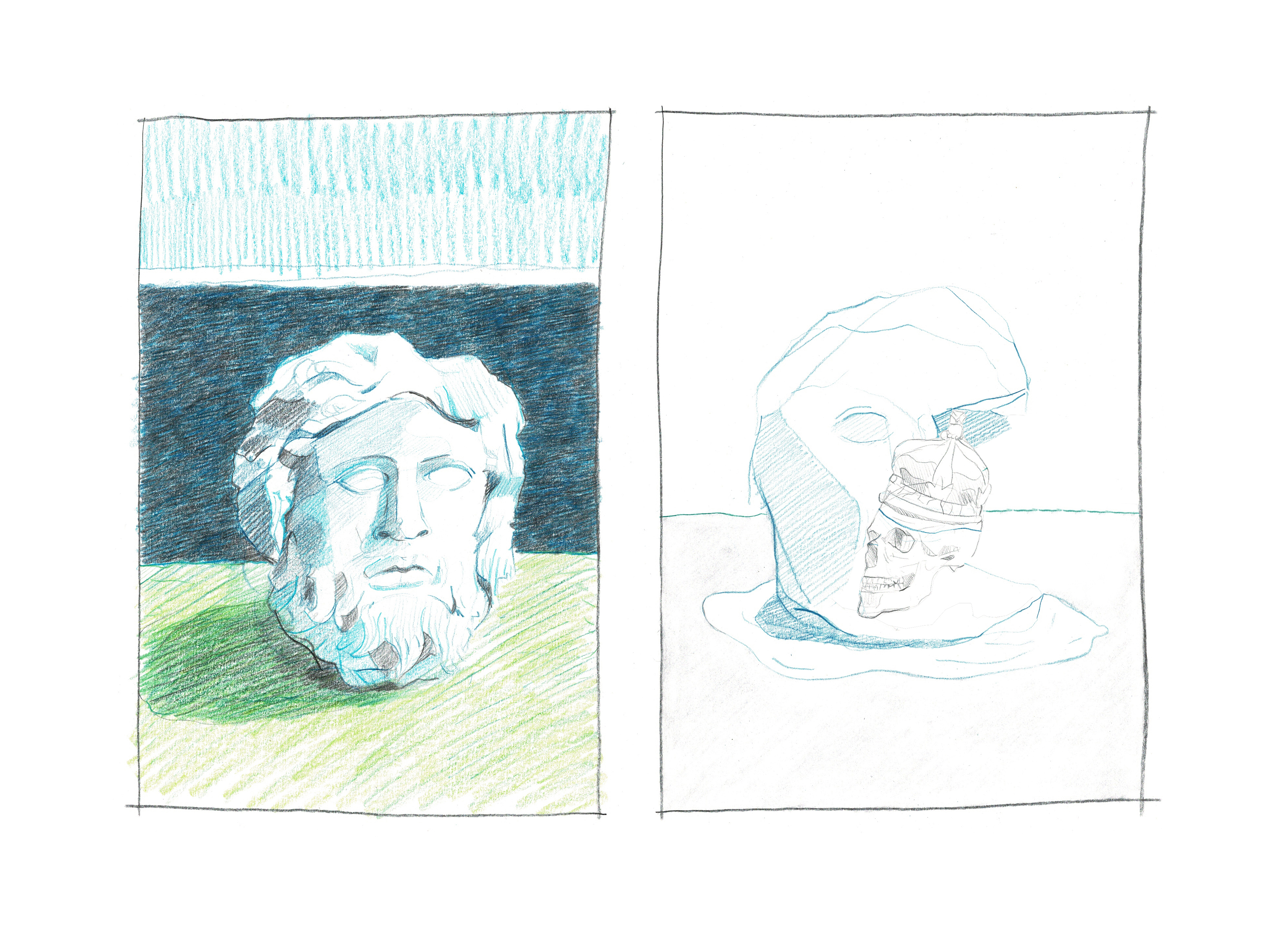 Once the plaster disintegrated completely, a concentric figure appeared from inside the sculpture; a crowned skull, constructed of a much stronger material than the first. This second sculpture also changes in time: the direction the crowned skull will look at. As party of a public playground, the black crowded skull works as a weather vane that people can direct. Death changes direction; where it is looking now is something that visitors can decide.