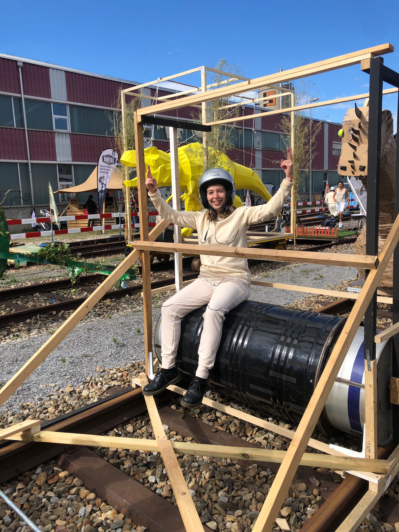 The central idea of the competition created by Beni, which is now in its sixth version, is to create carts that, like a forced foot, do not drag or pull. Our project consisted of building with mainly found materials (with a budget of 200 CHF it was our option) a cart made of oil barrels that would allow us to run the race in the opposite direction on them. In turn, we used costumes that represented our naked bodies. So we played with the idea that, representing Chile, we ran backwards fully exposed and with minimal resources. Our cart fell apart in the course of the race and our participation was somewhat disastrous, but not enough to even win the award for “Most Beautiful Failure”. Even so, we did our best and we remember the whole experience as a dream in which everything made sense in itself.